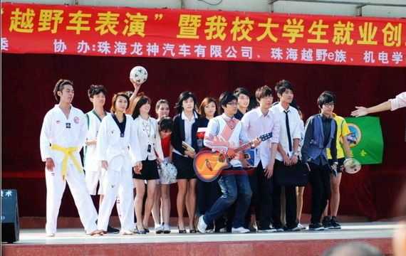 12月5日龍神公司與廣東科學(xué)技術(shù)職業(yè)學(xué)院聯(lián)合“越野e族”舉辦“第十七屆大學(xué)生文化藝術(shù)節(jié) 越野車文化交流表演暨大學(xué)生就業(yè)創(chuàng)業(yè)基地建設(shè)啟動(dòng)儀式在廣科院校園隆重召開。此次大學(xué)生文化藝術(shù)節(jié)由廣科院校團(tuán)委主辦,龍神公司、越野e族協(xié)辦,出席此次活動(dòng)的分別來自珠海,江門,中山,順德,澳門的越野e族朋友共八十多輛高級(jí)越野車參與;在緊張刺激的汽車轟鳴聲中拉開了序幕。