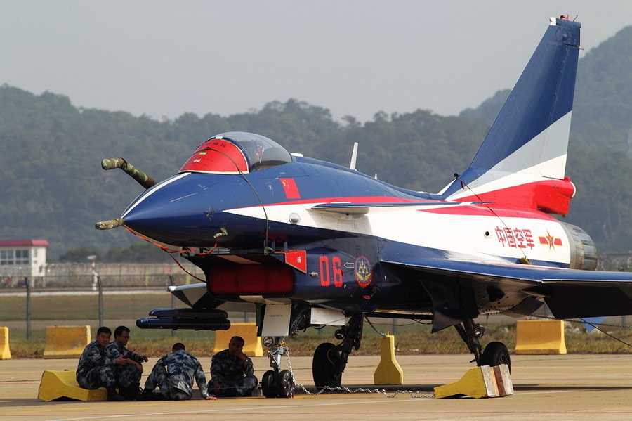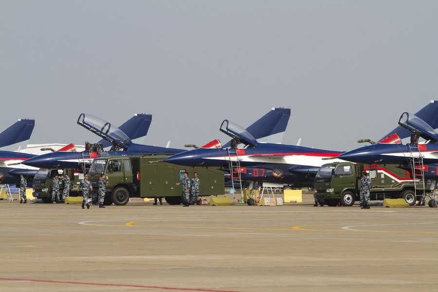 地面整備中的空軍八一飛行表演隊的殲10戰(zhàn)機(jī)。