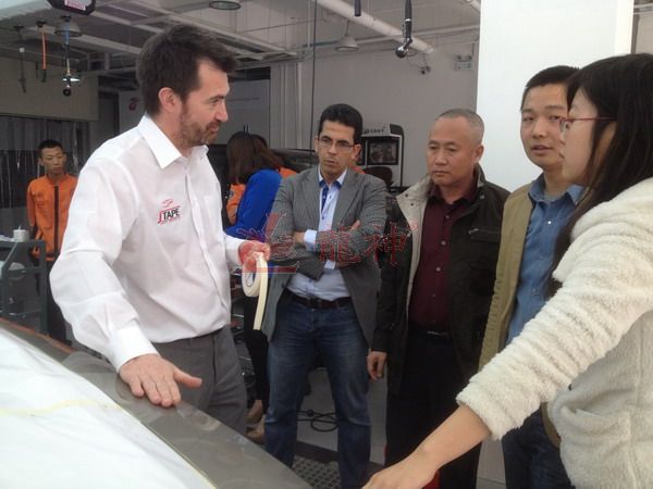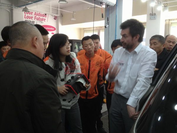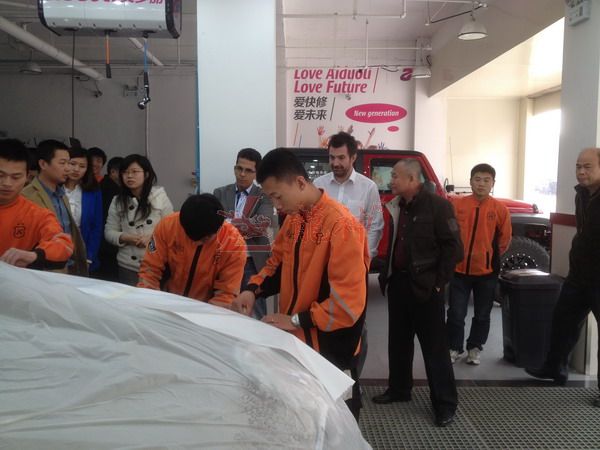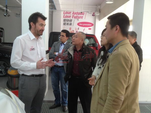 2013年特邀國外專家赴北京車爵士演示車縫泡膠條的使用 本司訊:2013年4月北京晴空萬里,龍神公司特邀英國專家一行五人,來到了北京車爵士進行汽車噴涂遮蔽技術(shù)交流。首先公司一行了解車爵士的汽車噴涂情況及詢問了使用的遮蔽工具情況。隨后英國專家針對在汽車噴漆時難噴涂的車門縫隙、玻璃死角等地方的專業(yè)遮蔽工具的演示。車縫泡沫膠:用于車身所有縫隙的遮蔽,有效隔離及遮蔽漆霧噴入車縫里。 2013-04-08 12051