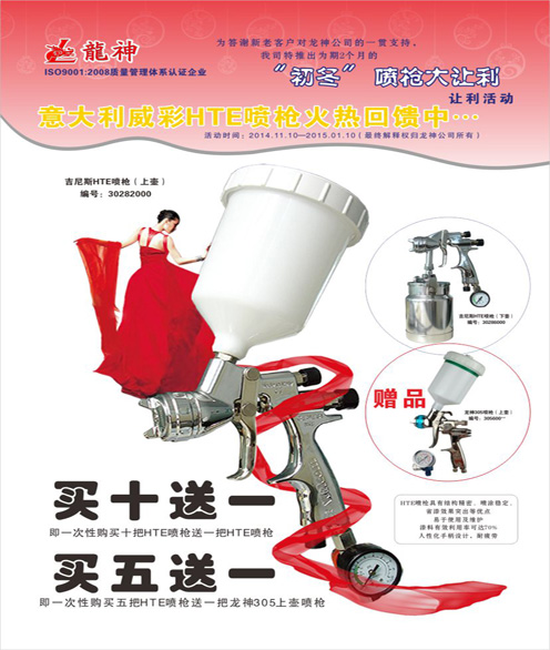 2、買五送一(即一次購(gòu)買五把HTE噴槍送一把龍神305噴槍)