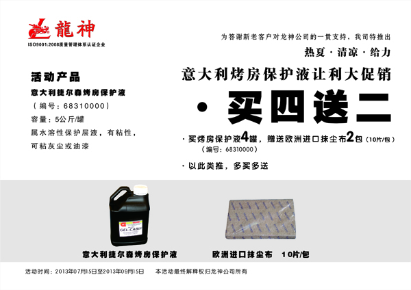 意大利烤房保護(hù)液促銷(xiāo)方案