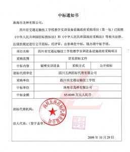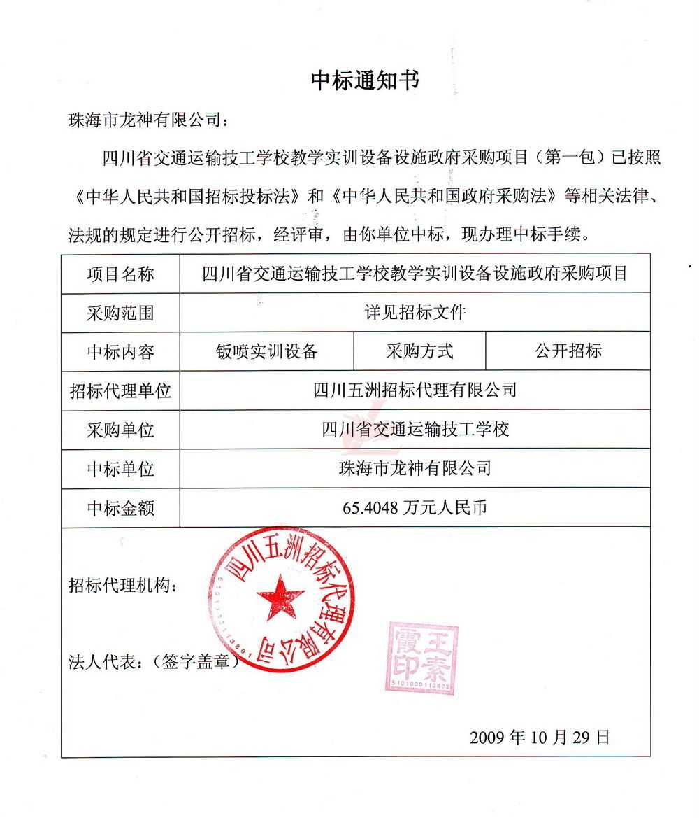 [喜訊]熱烈祝賀龍神成功中標-四川省交通運輸技工學校 [喜訊]熱烈祝賀龍神成功中得四川省交通運輸技工學校標 [新聞中心]珠海市龍神有限公司經(jīng)過長時間的籌備已成功中得四川省交通運輸技工學校教學實訓設備設施政府采購項目標,這是珠海市龍神有限公司一種實力的表現(xiàn)。說明了珠海龍神的品牌在不斷的加強、深化。 珠海龍神公司一直專業(yè)、效率、服務、環(huán)保。同時“龍神”在創(chuàng)新中求發(fā)展,在發(fā)展中求創(chuàng)新的原則。 (中標通知書,點擊放大圖) 2009-11-06 9072