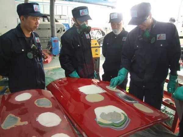 老師們正在進(jìn)行調(diào)漆